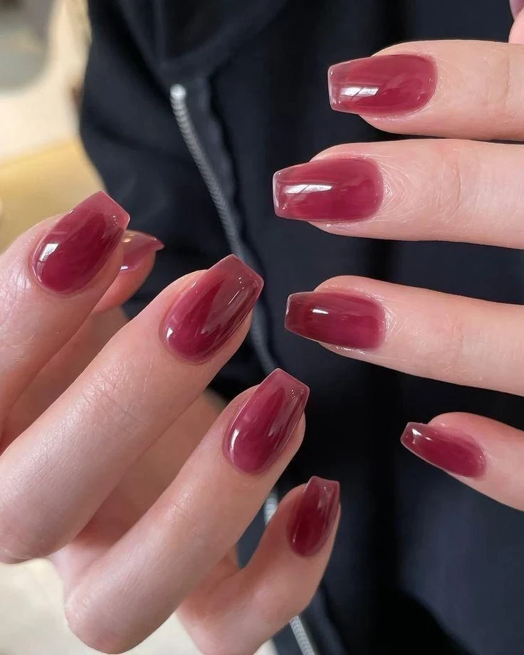 Желейный маникюр особенно выгодно смотрится на коротких или тонких ногтях: прозрачность зрительно удлиняет форму, а мягкий оттенок добавляет аккуратности без необходимости наращивания.