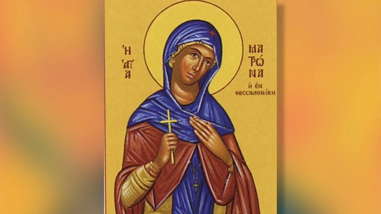 Матрона родилась и жила в Солониках в III веке. Она служила у Павтилы, жены местного военачальника. Павтила исповедовала иудаизм и всеми силами пыталась убедить свою рабыню отречься от христианской веры, не желая, чтобы та признавала Иисуса Христом. Однако Матрона оставалась непреклонной в своей преданности Христу.