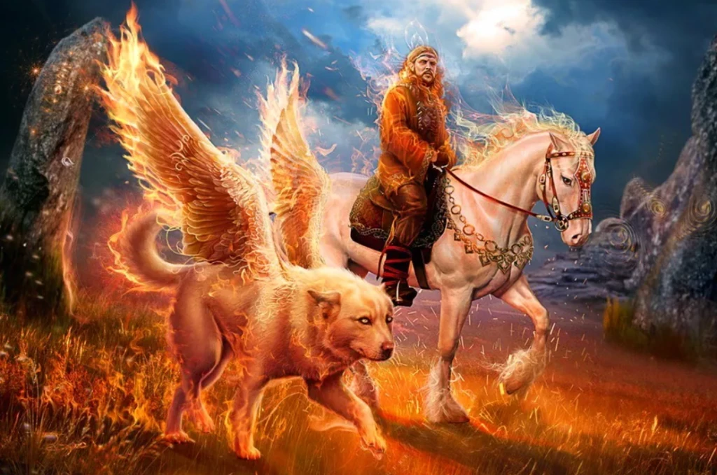 Существует легенда о том, что Семаргл возник из огня. Когда-то небесный кузнец Сварог высек искры из камня Алатырь, и эти искры оказались божественными, даруя яркий свет и пламя. Из языков огня появился бог Семаргл, который сидел на серебряном коне.