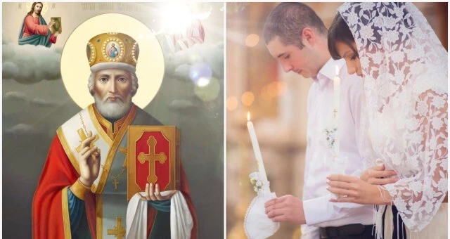 «С полным любви сердцем, превеликим желанием и утомлением от ожидания обращаюсь к тебе, о Святой Николай Чудотворец. Не гневайся на греховные просьбы мои, ибо помыслы мои полны чистой и светлой любви, соедини судьбы Рабов Божьих (имена женщины и мужчины) навеки вечные. Молю я о чуде, ниспошли мне благословение свое, отрекаюсь я от всех мирских, греховных дел, желаю я только любви чистой, как слезы ребенка. Нареки нас мужем и женой, помоги в прошении к Господу о благословении нашем. Да будет воля твоя. Аминь».
