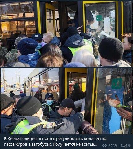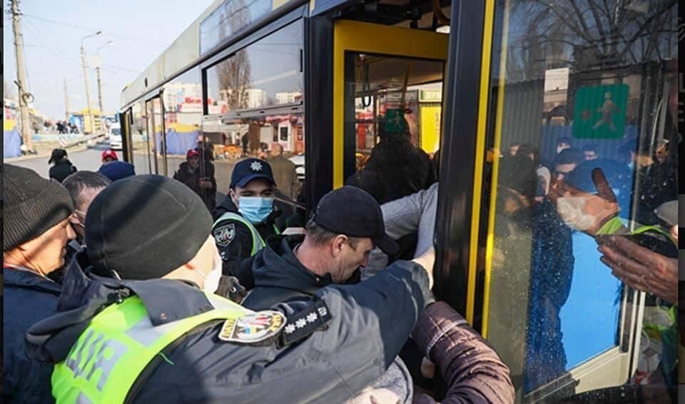 Столпотворения людей отмечаются на въезде в столицу, куда традиционно с утра прибывают люди из пригородов. Это при том, что в стране действует запрет на массовые скопления людей. Муниципальный транспорт и маршрутные такси не в состоянии перевезти всех желающих, которые раньше пользовались подземкой. Из-за отсутствия общественного транспорта и возможности добраться на работу остановилось функционирование практически всех строительных объектов в столице Украины. Под угрозой оказалась деятельность медицинских учреждений, где значительную часть среднего медицинского персонала составляют жители пригородов.