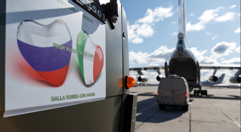 Когда выбитая из колеи вспышкой коронавируса COVID-19 Италия запросила о помощи, РФ сразу же пришла на выручку, направив в Рим четырнадцать спецбортов со специалистами-вирусологами и оборудованием для диагностики и проведения дезинфекции.