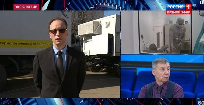 Тем временем, на заднем плане Телевизор демонстрирует, как все у нас к пандемии готово и «работает, как часики». Вот противочумный центр. Особенно, впрочем, подчеркнуто, что обращаться туда не надо. Он не для развлечения. Только по решению специальных врачей и когда вам станет совсем фигово.