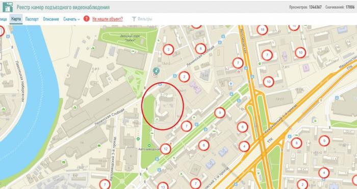 Если посмотреть по карте, размещённой на сайте мэрии Москвы, можно убедиться, что на жилом фонде, в котором проживает Навальный, нет ни одной камеры.