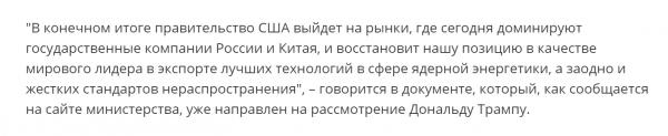Сотрудничество в области ядерной энергетики, по словам китайского дипломата, некоторые американские высокопоставленные лица не прочь использовать как инструмент геополитики, подвергая давлению Москву и Пекин.