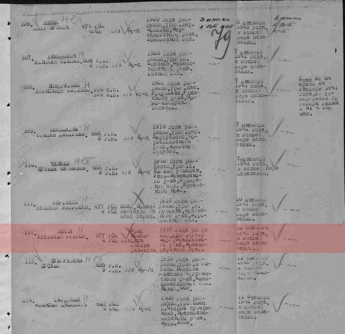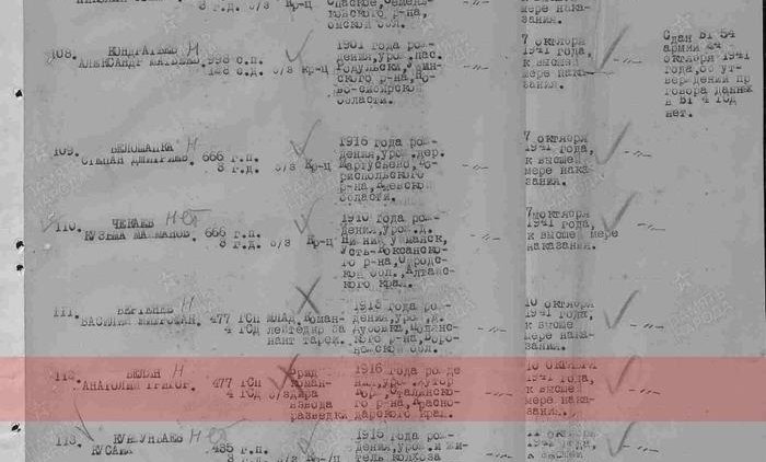 Счет расстрелянных в те дни шел на тысячи. Страница со ст. сержантом Беляном и мл. лейтенантом Бертеневым (см.фото) — из середины 35-страничного списка приговоренных военными трибуналами только одной, 54-й армии.