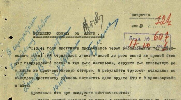 Упомянуты в рапорте — по-разному проявившие себя бойцы Сафонов, Лобачев и Шлык, восемь красноармейцев, взятых немцами в плен вместе в орудием, и трое бойцов, допустивших трусость и панику. Эти трое были расстреляны 10 октября по приговору военного трибунала.