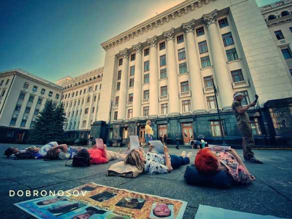 Участницы акции протеста заявили, что будут лежать до тех пор, пока к ним не выйдут представители Офиса президента. Акция анонсирована до 17:00.
