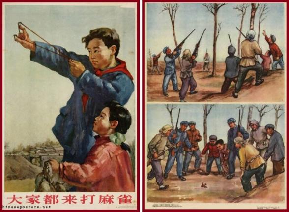 В результате маразма Мао были истреблены миллионы воробьев, после чего нарушилась экосистема. В первый год зерновых стало больше, но на следующий, в результате борьбы с природой, в Китае разразился настоящий голод, так как в условиях отсутствия воробьев стало больше насекомых-вредителей, которые и съели весь урожай.