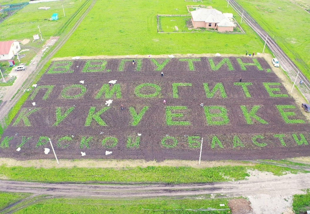 В поселке Кукуевка (Курская область) местные жители использовали поле с кустами картофеля, чтобы обратиться за помощью к президенту России Владимиру Путину. Они пропололи картошку так, чтобы с высоты был виден призыв «Путин, помогите Кукуевке», сообщает Telegram-канал Readovka.