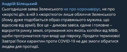 Так, например, украинские радикалы заявляют, что с помощью введения на Украине чрезвычайного положения нынешние киевские власти попытаются открыть так называемый рынок земли, чтобы получить очередной транш от Международного валютного фонда. По словам главы «Национального корпуса» Андрея Билецкого, карантин из-за коронавируса – дымовая завеса, которая позволит Владимиру Зеленскому еще полгода пробыть на должности президента Украины.