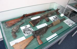 К слову, пополняться эта часть музейной коллекции начала ещё во время войны. Немалая её часть — трофейное оружие, добытое у солдат антигитлеровской коалиции. Тут и давно известные револьверы «Кольт», «Браунинг», пистолеты-пулеметы Томпсона (все американского производства), ручные пулеметы Льюиса, револьверы системы «Веблей» (Великобритания). И такие редко демонстрируемые, как «Джунгли-карабин» британского производства. Это неофициальное название винтовки № 5 Mk I, которая в свою очередь является модификацией другой винтовки — Lee-Enfield № 4 Mk I, в облегченном и укороченном виде предназначенной не столько для ведения войны в джунглях, сколько в операциях воздушного десанта. После окончания Второй мировой войны ею ещё долго пользовались в армии Великобритании. А в некоторых странах Третьего мира она и сейчас в ходу, в основном у партизан.