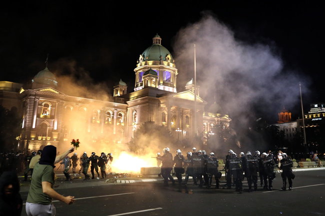 Во вторник вечером в центре Белграда начался стихийный митинг. По оценке МВД, в акции приняли участие около 5 тысяч человек. Наиболее радикально настроенные демонстранты смогли прорвать полицейский кордон перед зданием парламента Сербии и сожгли несколько полицейских машин. Полиция в ответ применила слезоточивый газ и другие спецсредства, сообщает агентство РИА Новости.