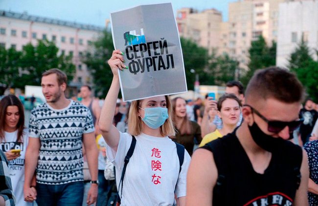 После задержания и ареста губернатора Хабаровского края Сергея Фургала в Хабаровске и других городах региона начались массовые акции протеста, которые в первый день, по разной информации, собрали от 5000 до 35000 человек.